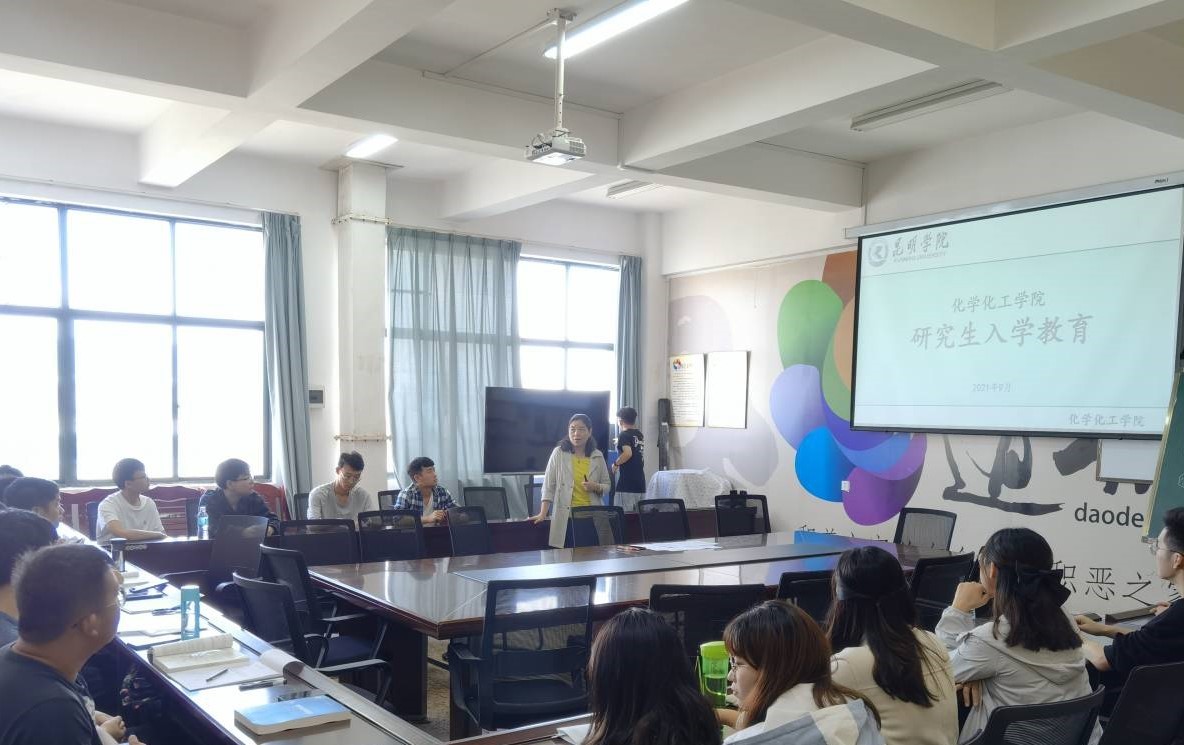 新生入学教育是研究生的第一课,也是加强研究生教育培养的重要环节。为引导2021级研究生新生尽快了解和熟悉新的学习环境、熟知相关规章制度、明确学习目标、做好人生规划,化学化工学院在博识楼4103、惟真楼3409室对21级材料化工专业硕士研究生新生开展了小班化入学教育,包括思想政治教育、学术道德、学科专业、心理健康、校园安全、新系统使用培训等内容。化学化工学院党总支书记乔永锋、院长王宝玲、副院长鞠海东、梁德强教授、研究生秘书刘空以及2021级材料与化工专业全体研究生新生参加了入学教育。